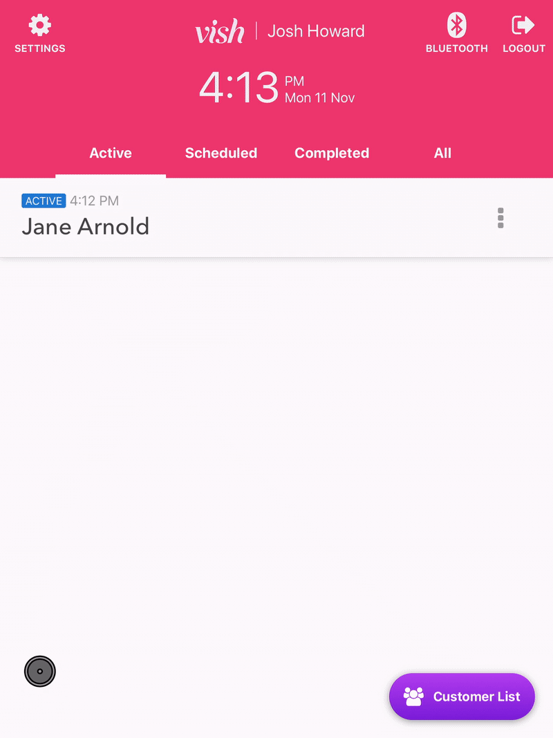 - From the Appointments Dashboard find the appointment in the list and tap the row to enter the mixing area
