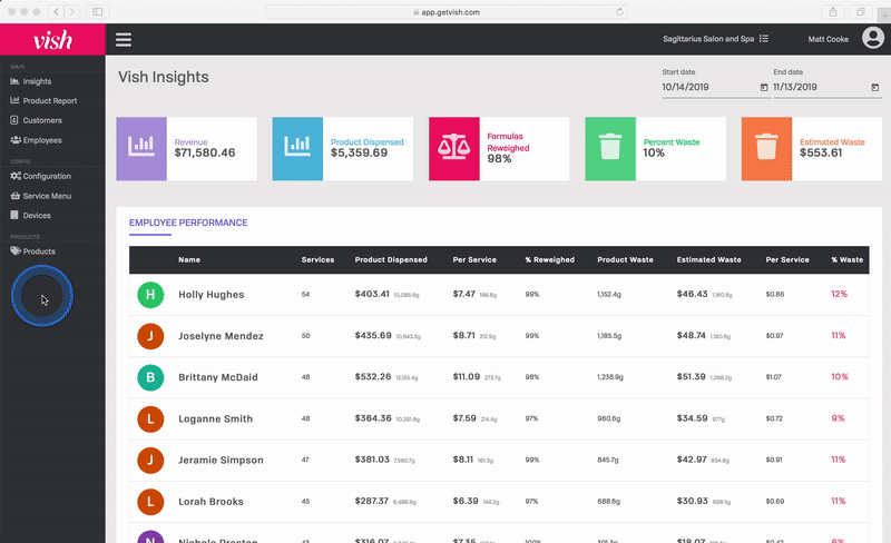 The waste history graph is a great way to visualize your salons key metrics over time.