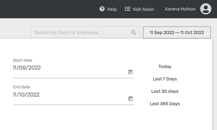 - Search by client name or employee name