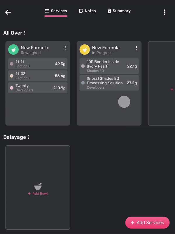 - From the Schedule tab, find the appointment in the list and tap the row to enter the Appointment Overview screen for the selected client. Tap on the bowl card you’d like to continue mixing for, and select Continue Mixing.